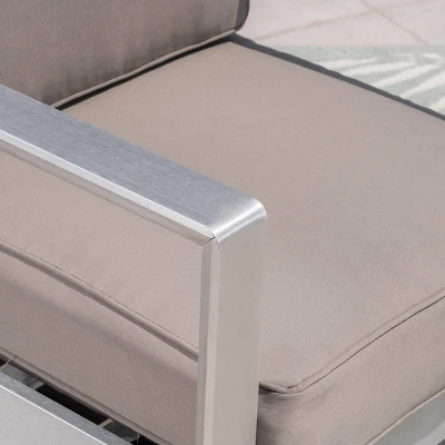 Amata 5pc Aluminum Chat Set With Fire Pit And Tank Holder – Silver/Khaki/Dark Gray – Christopher Knight Home