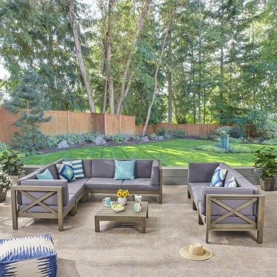 Brava 9pc Acacia Sectional Sofa & Table Set – Christopher Knight Home
