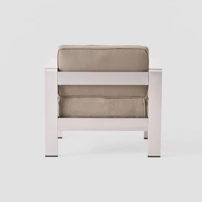 This five piece chat set is a sleek and simple way to add seating to your patio without dominating your space. The light aluminum frame of this set allows you to move each piece around depending on the type of event that you are hosting. Featuring four club chairs with a matching coffee table, this set is everything you need without needing a whole lot of space. Complete with water resistant cushions designed for both longevity and comfort, this set is a must have for any home.