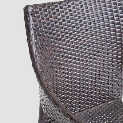 Easily enjoy a lavish meal with your family and friends on a warm summer evening with our Christopher Knight Home Espanola 9pc Wood and Wicker Dining Set. This clean and simple set combines the comfort of wicker and the sleek design of slatted acacia wood, creating the perfect set for your outdoor space. Complete with a table and eight chairs, this set offers ample room to keep all your guests comfortable in the great outdoors. This set offers exquisite dining and cushioned seating that is sure to complement any patio décor.