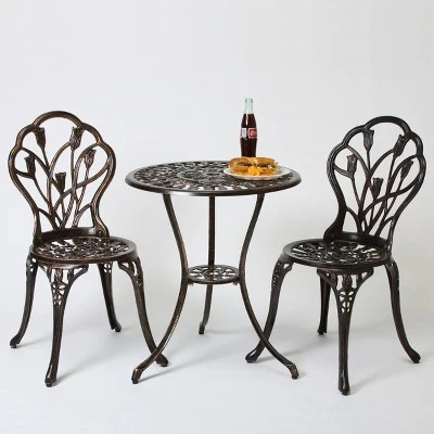 Nassau 3pc Cast Aluminum Patio Bistro Set – Brown – Christopher Knight Home