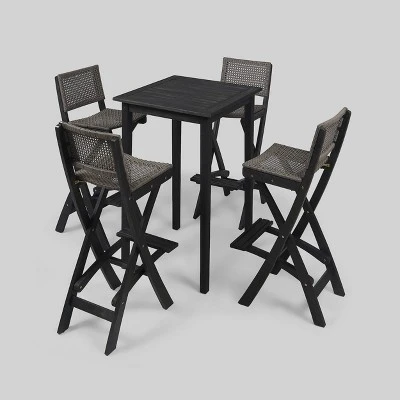 Polaris 5pc Wood And Wicker 26″ Square Bar Set Dark Gray – Christopher Knight Home