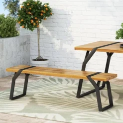 Varva Rectangular Outdoor Acacia Wood Dining Table Teak/Black – Christopher Knight Home