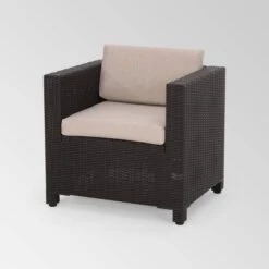 Waverly 5pc Faux Wicker Chat Set Dark Brown/Beige – Christopher Knight Home